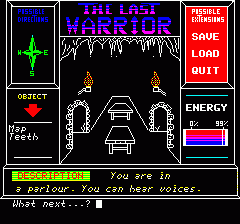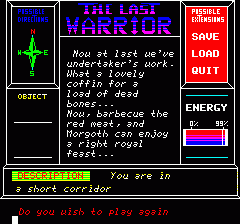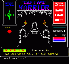 2) you can very quickly and easyly make encounter with a warrior, a dwarf or some other monster while exploring the dungeon, and this apparently causes immediate death, even ig you carry some weapon like a knife.. So this is the kind of game where you have to carefully map every room and action, which takes a while as the game reportedly has more than 70 rooms to xplore... |